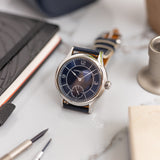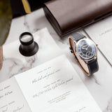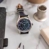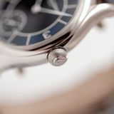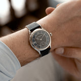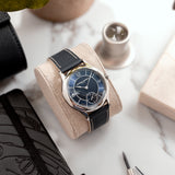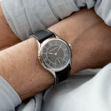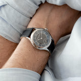This Laurent Ferrier takes the brand's penchant for tradition and cleverly delivers it in a bright and intelligent manner resulting in a simply beautiful piece on the wrist. Its 40mm case size is only bettered by its 10.7mm thickness. It's a watch with a real presence, not through garish features but through remarkably presented and painstakingly finished core elements. There is enough casual style here to suit weekly wrist time, with its dial possessing a versatile and adaptable personality. Of course, its stainless steel exterior and pairing with the Mr Watchley Navy Blue watch strap only emphasise this further.