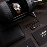 This MB&F LM101 Limited Edition for HODINKEE dates from 2015 and is complete with its full box and original papers. The watch comes with 2 custom Mr Watchley Straps. It has also recently been serviced by MB&F in December 2022 and remaining in unworn condition since.
