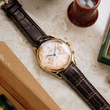 Under the direction of Gnutti, Minerva focused on becoming a manufacturer of calibres and watches by mastering the art of in-house movements and design, the Villeret Chronograph Ref. M132000 achieved precisely that. First debuting in 2002, this chronograph resides within the Collection 1858, a series which honours Minerva's legacy through the use of the 13.20 movement from the 1920s and dial design cues heavily influenced by traditional designs of the same era.