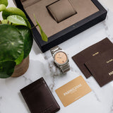One year after the launch, Parmigiani Fleurier collaborated with Wei Koh, founder of Revolution & The Rake, to produce a special edition of the classic two-handed Tonda. Limited to a highly exclusive 25 pieces, the 'Serenissima' introduced a salmon dial into the Tonda lineup, merging contemporary form with a collector's favourite dial colour.