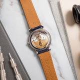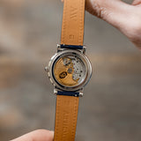 Punching above its weight literally and figuratively, the presence of this PF004579 Toric Memory Time on the wrist is remarkably striking, which, combined with its skeletonised delta hands, creates a lasting impression of boldness and individuality. Aided greatly by the double-stepped coin edge bezel, this piece makes a statement, with both bezel, dial, and hands shifting in the ever-changing light throughout the day. Thanks to its execution and complication, it's a category leader in elegant travel watches yet remains often overlooked. Many watches claim this concept, but few pieces can truly perform dressed up or dressed down with such class as this Memory Time.