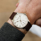 At 39.8mm wide with an extremely thin, almost non-existent bezel and an all-polished case, this Series 2 is all-dial and remarkably striking. And that's just how it should be, as the enamel dial and its individual furniture are the stars of the show on the wrist with their thickness and depth.