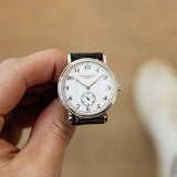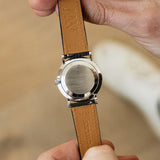 As the dress watch continues to have more and more of a moment, and in this world, all roads lead back to the Calatrava. Combine this unassuming dressy focus as of late with the perpetually maturing market for 'neo-vintage' watches, and what comes of it is the Patek Calatrava 5022. Only produced for six years during the turn of the 21st century, the 5022 was seen in all precious metals, with platinum being the rarest, precisely the case metal of this 5022P. Measuring 33mm in width, this platinum piece is the true embodiment of a dress watch, with an ultra-thin, svelte presence defined by its classic straight lugs and stepped bezel. Complete in high polish, the 5022P exterior is quintessential Patek and perfectly reflects the house's understanding of the importance of proportionality as a key trait of their pieces during this era.
