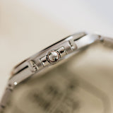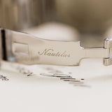 The case of the 3800 is a masterclass in proportion. Measuring 37.5mm across, it retains the signature porthole-inspired design, but with a softened, more wearable profile. The octagonal bezel with its gently rounded design at the edges sits flush against the mid-case, giving the watch its seamless, integrated feel. Brushed and polished finishing highlights the subtle geometry of the design without ever shouting for attention. The case is neither ultra-thin nor bulky, and the transition into the integrated bracelet preserves the visual continuity that defines the Nautilus. Even decades on, the 3800’s case feels effortlessly modern.