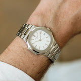 There’s a sense of duality in the 3800, particularly this white dial variant. It carries the same design language that made the Nautilus, but with a softer presence and quieter confidence. And in today's collecting landscape, where neo-vintage nuance is celebrated and the oversized bravado of the past is slowly giving way, the 3800’s moment feels both timely and deserved.