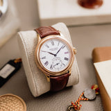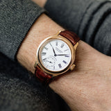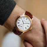 While its 40mm width may sound daunting, with a thickness of just 9mm, the Condottieri has wearability in its corner. Bettered further by a mix of case finishes and the timelessness of its design, it's a watch that suits regular wear over exclusively formal attire. With its rosy case beautifully contrasted by the starkness of its white dial, this Condottieri is a special piece from a time when Roger Dubuis was making his initial steps into independence.