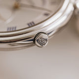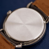 While most of the Reference 8 have a blue second hand, this one has an unusual gold, counter-weight second hand. After investigation, the second hand is confirmed, by the brand itself, to be original. This could have been a special request by its original owner to match to magnificent gold eye on the unique observatoire Urban Jürgensen hands. A clear demonstration of the brand's commitment to creating truly unique timepieces.