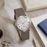 A watch that wears as if it were always just 'meant to be'. With its slender dimensions, slim stepped bezel and decidedly elegant teardrop lugs, the watch blends flawlessly with the wrist and is incredibly comfortable to wear. Its classical form make it a distinctly versatile dress watch.