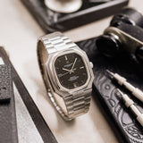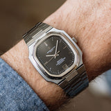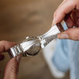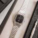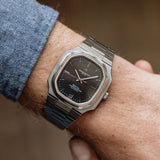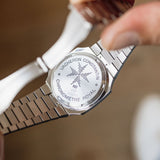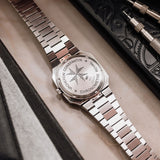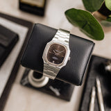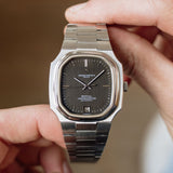 The 1970s was the decade of the luxury steel sports watch. Audemars Piguet led the charge in 1972 with the Royal Oak. Patek Philippe swiftly responded with the Nautilus in 1976, and Vacheron Constantin brought up the rear with the reference 222 in 1977. So you may be surprised to hear that the 222 wasn’t Vacheron’s first attempt at a new, integrated bracelet defined sports watch. In fact, in 1975 Vacheron’s first crack of the whip was the Chronometre Royal 2215. This lesser-known model represents quite a departure from the typical pieces Vacheron was putting out prior to the 1970s, such was the ripple effect of the Royal Oak’s success, and of course, the impending doom known as the quartz crisis. Predominantly it was Swiss watchmakers who needed to become a little more creative and perhaps daring with their references to remain attractive to modern and evolving wrists as batteries took over. Vacheron reacted quickly to Audemars Piguet’s contribution with the 2215 sporting a rather contemporary, chunky aesthetic. One could argue that the 2215 of 1975 is actually a closer resemblance to the Nautilus of 1976 with its angular shouldered case body and alike bracelet design.