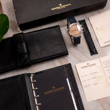 This Vacheron Constantin Les Historiques 47111/000P dates from 2000 and is sold with its complete, full set. Warranty papers, booklets, boxes and its original platinum pin buckle. The watch is in fantastic condition, with no signs of polishing over the years, meaning it still possesses those important lug details and crisp, deep engravings throughout.
