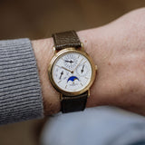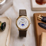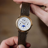 The perpetual calendar soon became the epitome of heritage-based fine watchmaking, standing the mechanical test of time. It is believed that the ultra-thin perpetual calendar model at hand, supposedly developed by Vacheron Constantin in 1983, played a weighty role in surmounting the horological crisis for the historic Swiss brand.