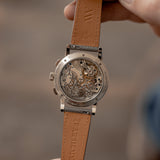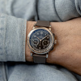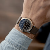 Like every single Lange, the 1815 Chronograph has both the brains and beauty thanks to none other than the L951.5. With 60 hours of power reserve, vibrating at 21,600 vph this flyback, column-wheel chronograph movement is statistically impressive. However, with the movement being produced by Lange, listing its statistics and performance is only half the story. The craftsmanship and beautiful aesthetics are what this movement is all about. Enjoyable through the display caseback is a mix of German silver bridges, extensive polishing, sharp interior angles, and soft bevelling. With its signature highly engraved balance cock, fine finishing is quite literally everywhere you look.