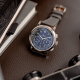 First introduced just ten years after the brand released its initial collection, the 1815 Chronograph was Lange's answer to requests for the Glashütte based watchmaker to produce a more wearable, simplified, and affordable chronograph. See, before the 1815, in 1999, Lange released a follow up to the first four watches of 1994: the Datograph. This technological wonder was a true behemoth of a watch powered by a brand new movement, the L951. Both watch and movement took the industry by storm, as other watchmakers at the time were only making the most of Lemania, Valjoux and El Primero based movements. To its advantage and detriment, the Datograph was a serious heavy hitter. It was a no-brainer for those in the know who held serious coin. But Lange was still a young company, and people wanted to see something more reserved and a little more approachable; a pure chronograph. Lange had earned its stripes with the Datograph, but the new challenge was to provide the same level of 'wow' in a more concise manner.