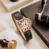 Just a slight extension of the arm, perhaps a gentle incline toward the body, a barely-there glance to the wrist - and the time is yours. No major twisting or turning required. The Cloche is such a pure form of elegance on the wrist. Elegance combined with a unique aura of strength and confidence. While at first it does provoke quite a different sensation when worn, this is a novel sensation that soon fades with consecutive wears. One feature of this CPCP Cloche that will never fade however, is its astounding aesthetic magnetism. This is a dress watch with a remarkable twist that simply refuses to go unnoticed.