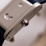 Powering the Cartier Tank à Guichets is the 9752 MC mechanical jump hour calibre. Created by Piaget for Cartier, this 19-jewel movement is hand-wound and comes with beautifully decorated Cartier bridges, discreetly hidden behind the solid case back of this piece.