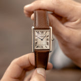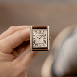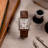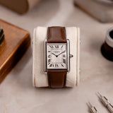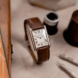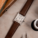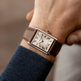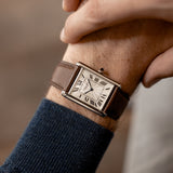 Louis-Joseph Cartier (1875-1942) was a designer and businessman extraordinaire, with an impeccable sense of style. Designer of the Tank, the piece presented here is an example of the version of the watch that he deemed worthy to carry his name. With smoother and softer case lines than the design of the very first Tank that preceded it, the Tank Normale (1917), the Tank Louis Cartier (1922) is the blueprint for that understated yet unmistakable Cartier elegance.