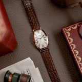 By then, Cartier had already created the Santos Dumont pilot watch for the namesake aviation pioneer (in 1904), but the watch wasn’t available on the market yet, making the Tonneau being perceived as the first Cartier wristwatch for men.