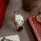 Being the epitome of class on the wrist, the Tonneau – barrel in French, referring to its curved and elongated profile – not only captured the zeitgeist but proved to be a timeless design icon, clearly distinguishable from the rest of the vintage Cartier archive.