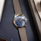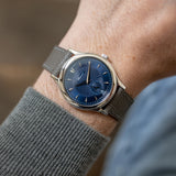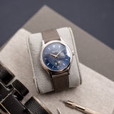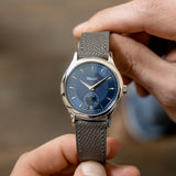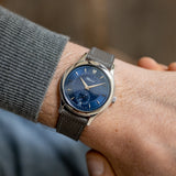 On either a male or female wrist, this specific expression truly excels unlike any other 1860, as its desirable blue dial doesn’t just offer eye-catching appeal thanks to its tone, but the additional depth achieved by its finely decorated guilloché pattern is simply wonderful. Due to its stepped bezel and minimal case, the watch has a contemporary wrist presence appropriately dominated by its dial. It's also worth highlighting the lugs, which further sensibly aid its presence. It’s difficult to downplay the importance of this significant 1860; for Chopard connoisseurs and experts within the neo-vintage space alike.