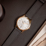 Mr Watchley Grained Brown calf strap comes from the male calfskin and is famous for its resilience and luxurious textured look thanks to the embossment of the grain patterns into the leather. This typical laminated appearance and resilient structure explains why brands like Hermès are fond of this material.