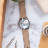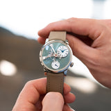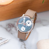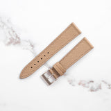 Mr Watchley Grained Sand calf strap comes from the male calfskin and is famous for its resilience and luxurious textured look thanks to the embossment of the grain patterns into the leather. This typical laminated appearance and resilient structure explains why brands like Hermès are fond of this material.