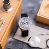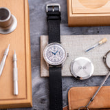 To commemorate these important achievements, Massena LAB collaborated with the independent watchmaking team of Maria and Richard Habring of Habring2 to create a limited edition watch. The collaboration took over a year and a half to arrive at a refined and innovative chronograph that is certain to delight watch connoisseurs.