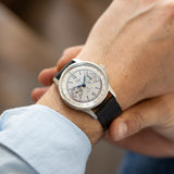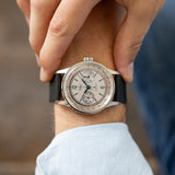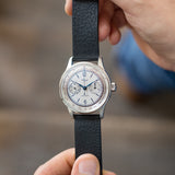 The TimeZone 20th Anniversary Habring2 Chrono COS, reference TZ20, is characterised by its elegant and uncluttered form, as well as its patented technology and is limited to only 20 pieces. The one presented here is number 20 out of 20The watch comes with its original box and papers along with extra parts and hands for the next maintenance. A personal note from William Massena himself is included in the set.