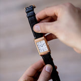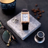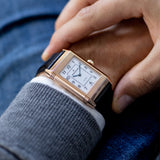 A beautiful white enamel dial crafted in the manufacture of Jaeger-LeCoultre. A skill that only experienced artist can control.