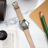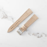 Mr Watchley Nubuck Naturel straps have special finishes with a very original grain. It's a strong leather that is coming from the very best part of the hide. During the process, the bull skin is finely sanded on the grain side, which gives these watchstraps their special characteristics creating a velvet-like surface and feel.