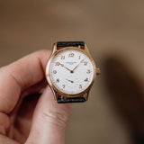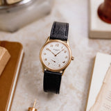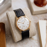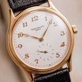 It was during the 1980s when the name 'Calatrava' was first officially used by Patek Philippe on the ancestors of the 96, and in 1986, the reference 3923 debuted. In classically round 31.5mm cases created in yellow and pink gold (with a few special editions in steel) and with extremely classic baton markers and large dauphine hands, the 3923 is a wonderfully authentic callback to the origins of the Calatrava during an era where other references such as the 3919 had Clous de Paris bezels and pencil hands. The 3923 remained in the collection for 13 years until 1999, when Patek waved goodbye to the reference with a limited run of 35 examples in pink gold to commemorate 150 years of the London-based retailer Harrods.