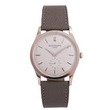 Powering the Patek Philippe Calatrava 5196 is the manufacture calibre 215 PS. Based upon the 215 (the PS signifies it has a subsidiary seconds), this movement has been in production since the 1970s and, as such, carries hallmarks of a traditional calibre both technically and visually. Manually wound with a power reserve of 44 hours, vibrating at 28,800 vph, and with the Patek Philippe Seal, the 215 PS embodies the Calatrava's mastery of simplicity. Thin and austere, the movement is made up of five bridges, each with Geneva striping, generous anglage, exposed jewels, and the proprietary patented Gyromax balance wheel.