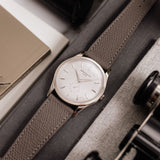 At 37mm, with an 8mm thickness, the 5196 is unsurprisingly seriously comfortable for a wide spectrum of wrist sizes. Its dressy appearance is also refreshingly versatile, capable of adding the pièce de résistance to dinner wear or even juxtaposed excelling on the casual weekend breaks. By not being one to follow trends or have a penchant for garish statement-making, it's one of the most unassuming Patek Philippe models, especially in white.